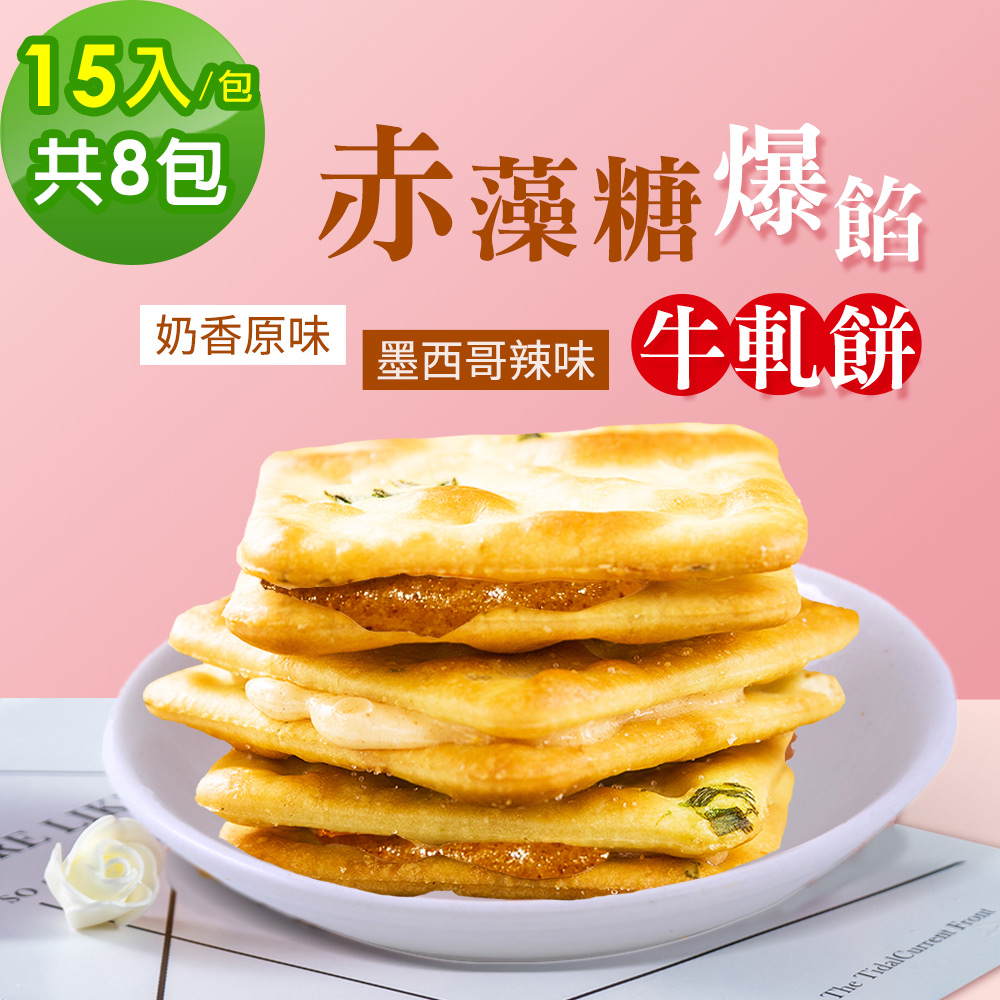 便幸福-赤藻糖爆餡牛軋餅8包(15入/包)-原味+辣味-蛋奶五辛素