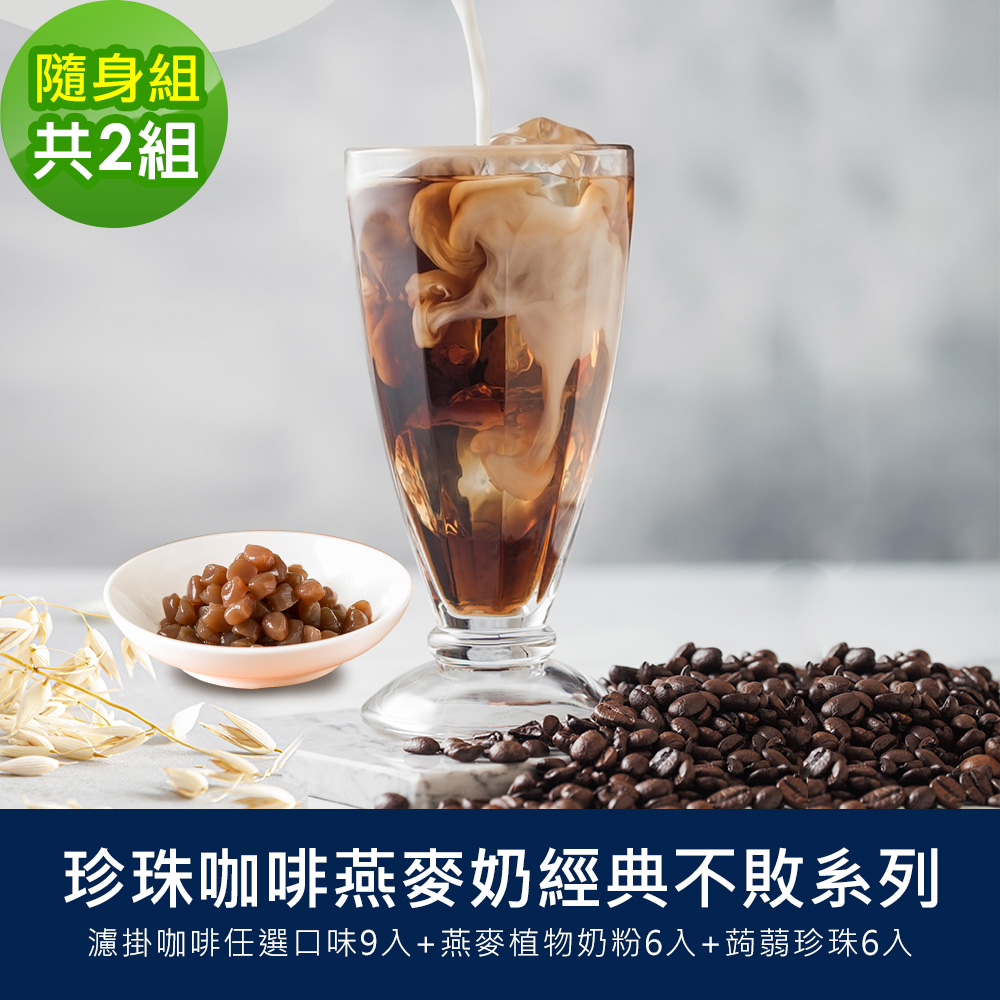 順便幸福-好纖好鈣蒟蒻珍珠咖啡燕麥奶隨身組2組(經典不敗系列濾掛咖啡+燕麥植物奶粉+即食蒟蒻粉圓珍珠)