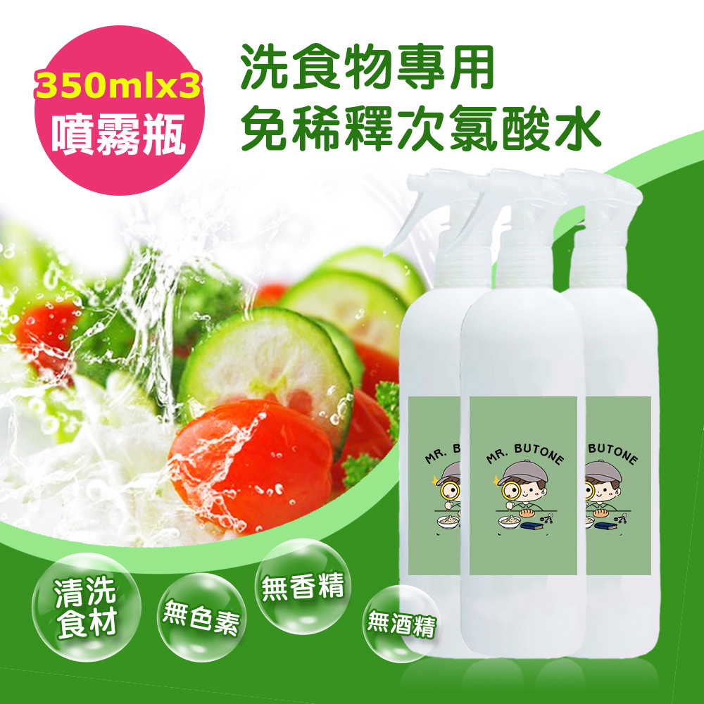咘酮-洗食物專用免稀釋次氯酸水350mlx3瓶(奶瓶蔬果 蔬果清潔 食品清潔)