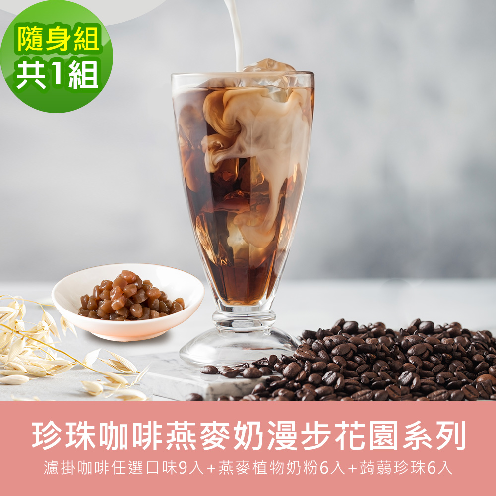 順便幸福-好纖好鈣蒟蒻珍珠咖啡燕麥奶超值組1組(漫步花園系列濾掛咖啡+燕麥植物奶粉+即食蒟蒻粉圓珍珠)