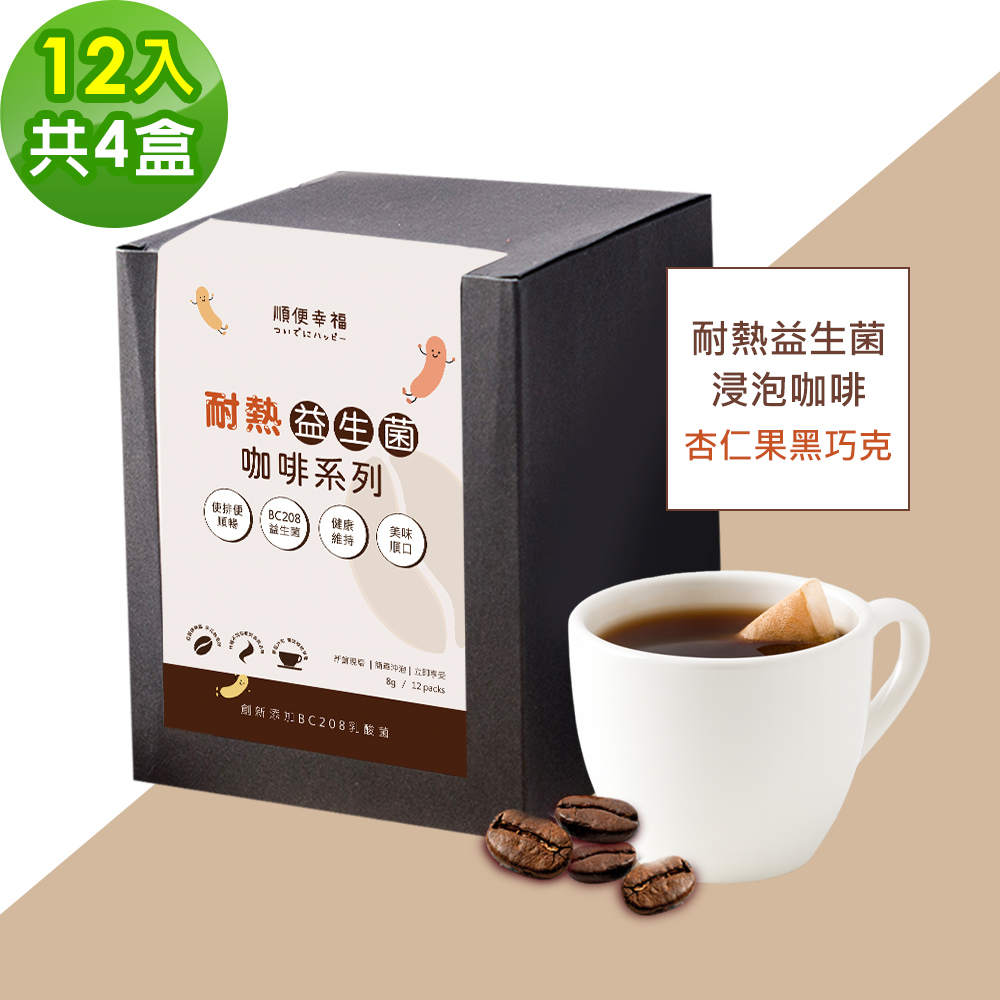順便幸福-益生菌浸泡咖啡-杏仁果黑巧克12包x4盒(使排便順暢 乳酸菌)