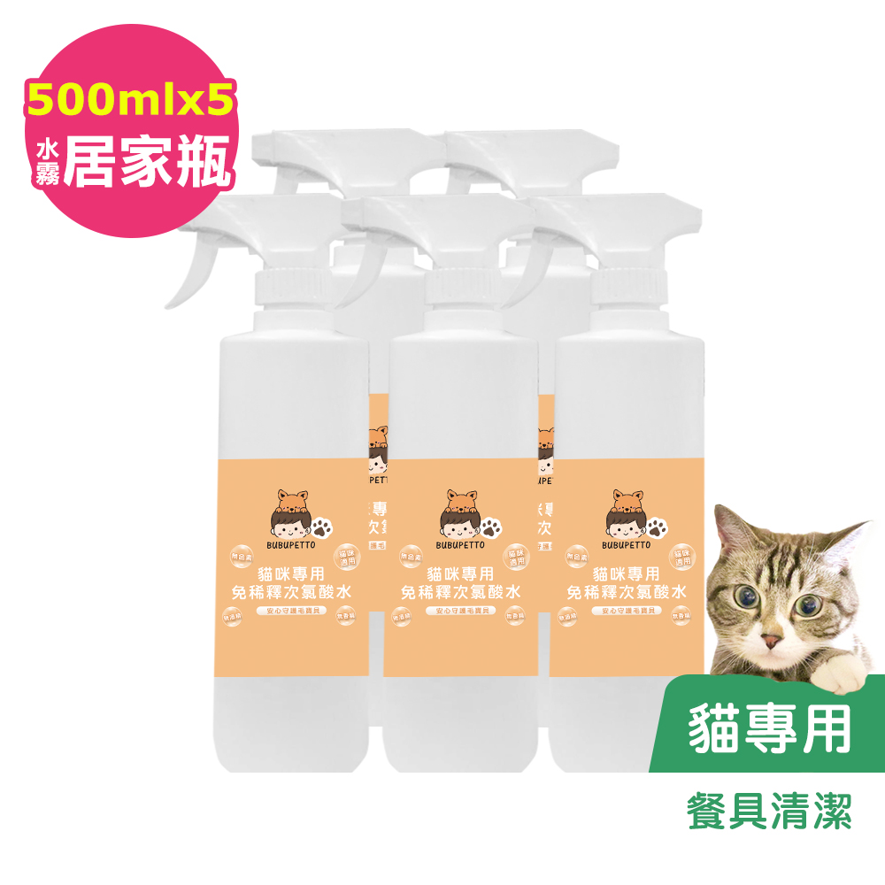 BUBUPETTO-貓咪餐碗清潔用免稀釋次氯酸水500mlx5瓶(寵物)