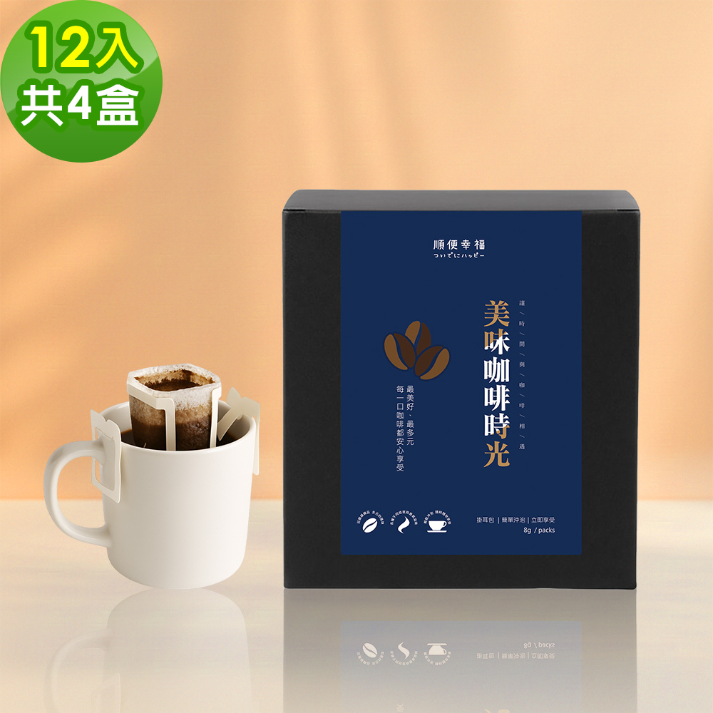 順便幸福-現磨濾掛咖啡-莊園柑橘核果咖啡12包x4盒(咖啡豆 咖啡粉 濾掛式)