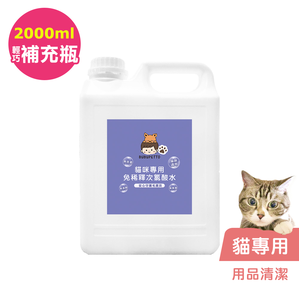 BUBUPETTO-貓咪用品清潔用免稀釋次氯酸水2000mlx1瓶(寵物)