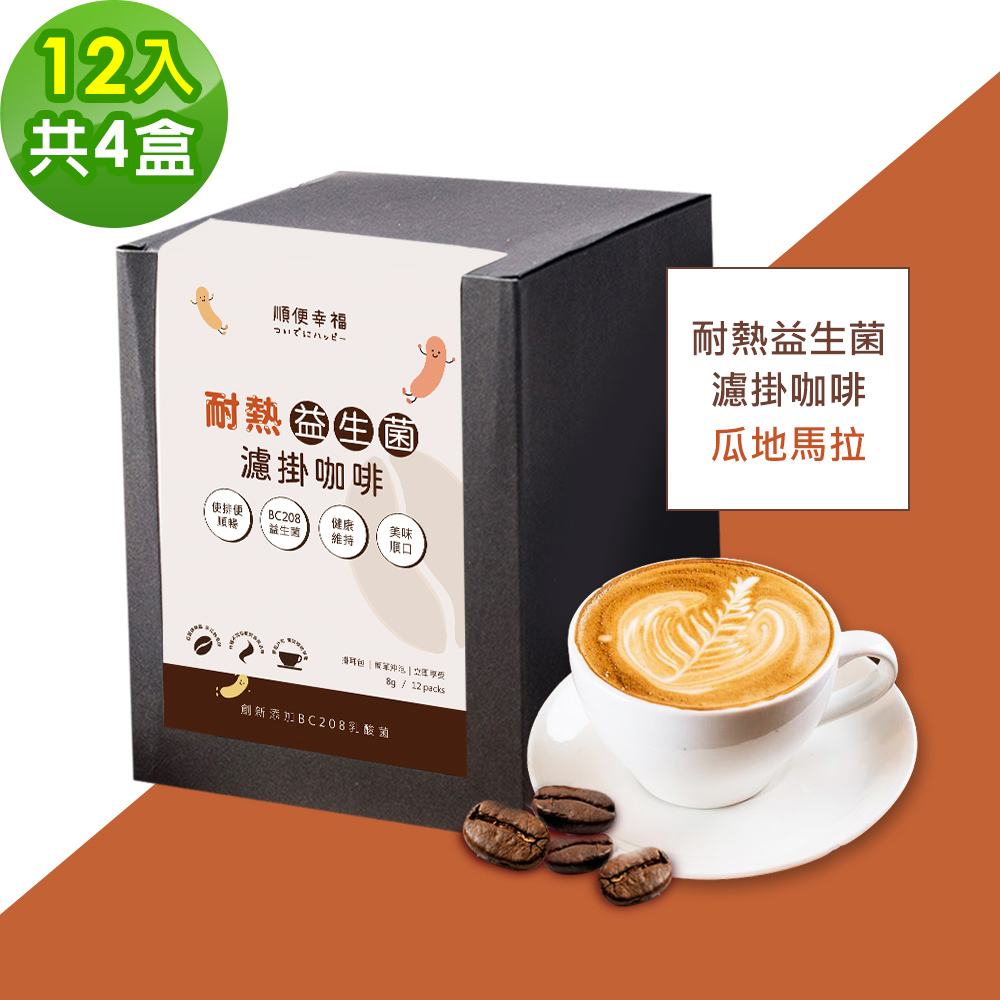 順便幸福-益生菌濾掛咖啡-瓜地馬拉12包x4盒(使排便順暢 乳酸菌)
