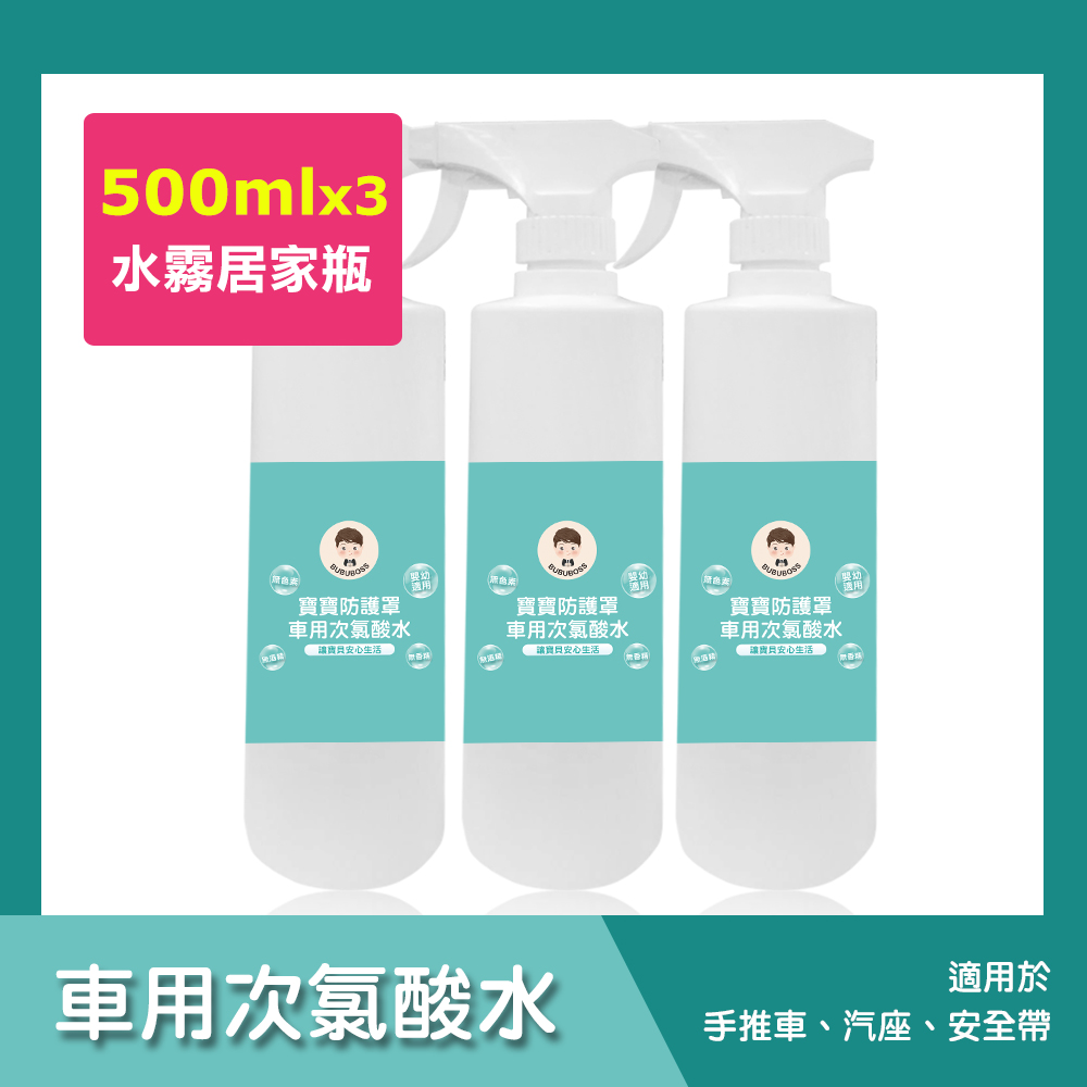 BUBUBOSS-寶寶防護罩-車用次氯酸水-水霧居家瓶3瓶(500ml/瓶)