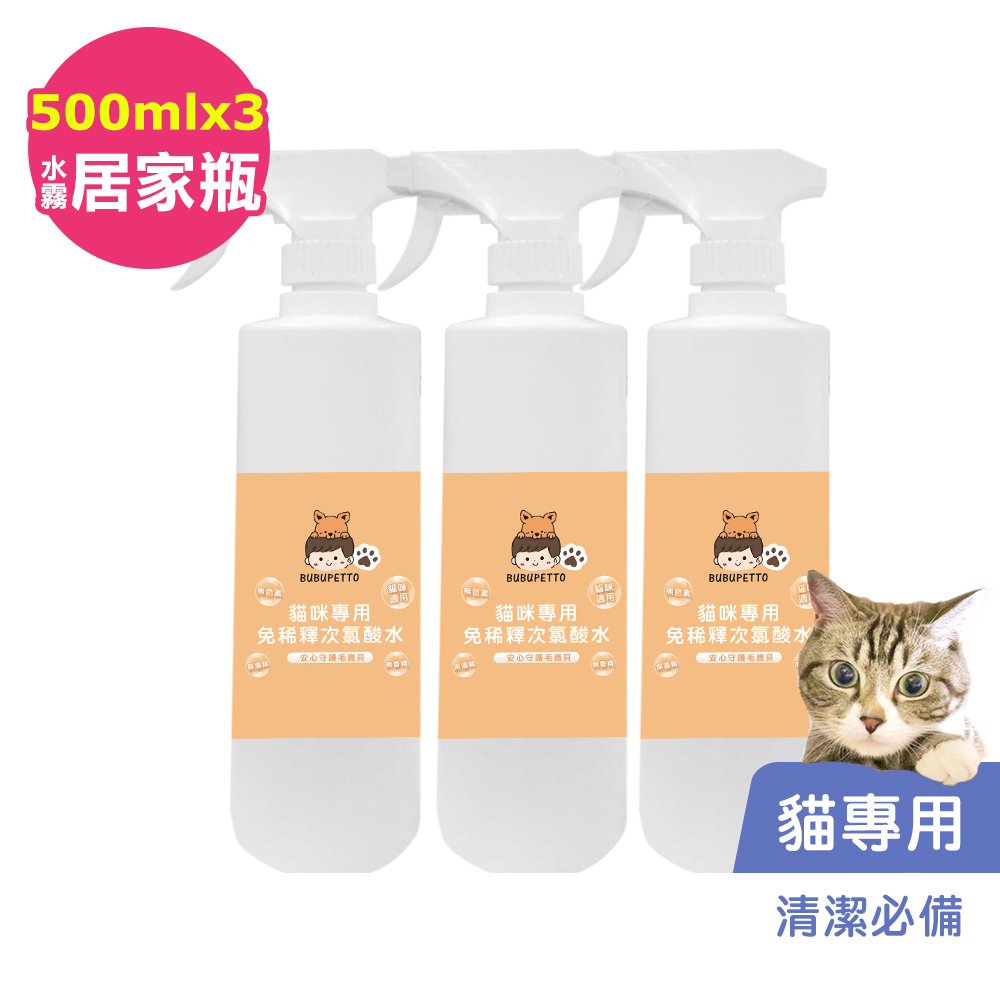 BUBUPETTO-養貓必備清潔用免稀釋次氯酸水500mlx3瓶(寵物)