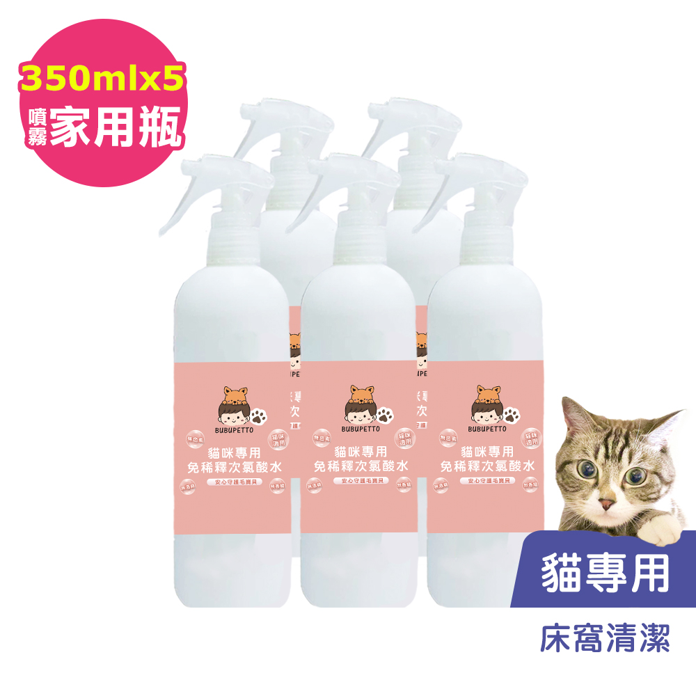 BUBUPETTO-貓咪寵物床清潔用免稀釋次氯酸水350mlx5瓶(寵物)