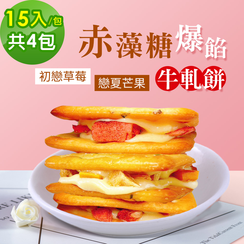 順便幸福-赤藻糖爆餡牛軋餅-初戀草莓x2包+戀夏芒果x2包(果乾 下午茶)