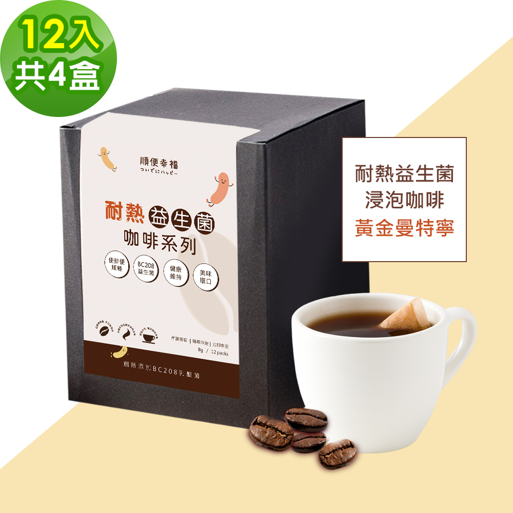順便幸福-益生菌浸泡咖啡-黃金曼特寧12包x4盒(使排便順暢 乳酸菌)