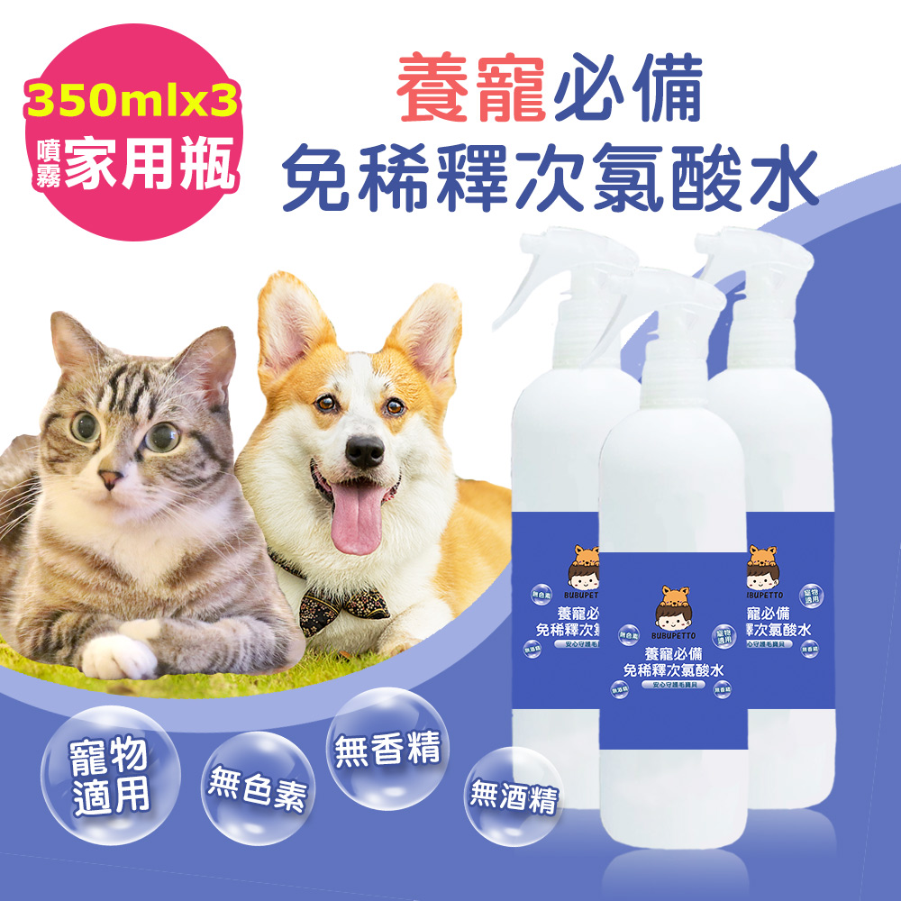 BUBUPETTO-毛孩必備免稀釋次氯酸水350mlx3瓶(毛小孩 寵物 拖地)