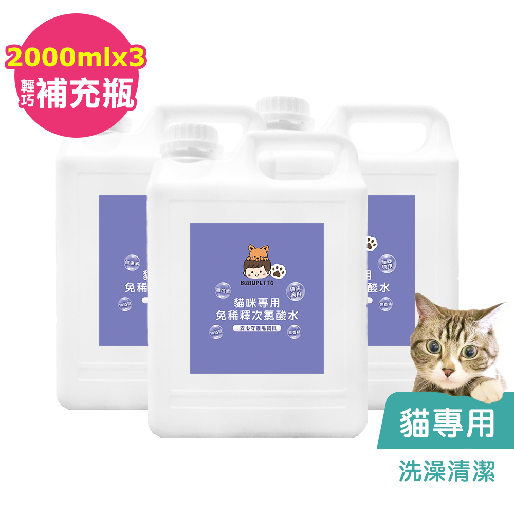 BUBUPETTO-貓咪洗澡清潔用免稀釋次氯酸水2000mlx3瓶(寵物)
