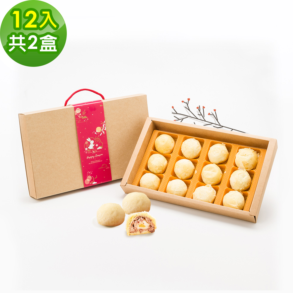 樂活e棧-相思麻糬月餅禮盒12入x2盒(奶素 月餅 紅豆 傳統 中秋)