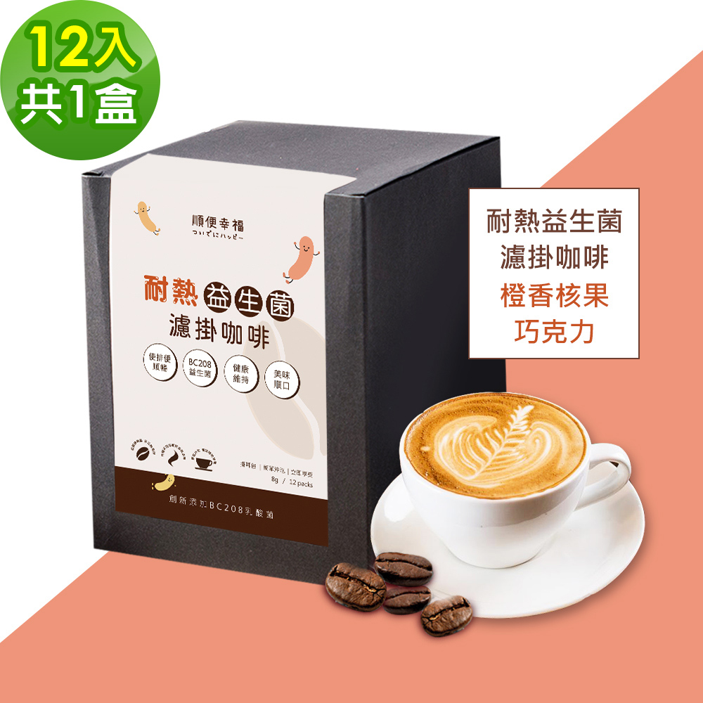 順便幸福-益生菌濾掛咖啡-橙香核果巧克力12包x1盒(使排便順暢 乳酸菌)